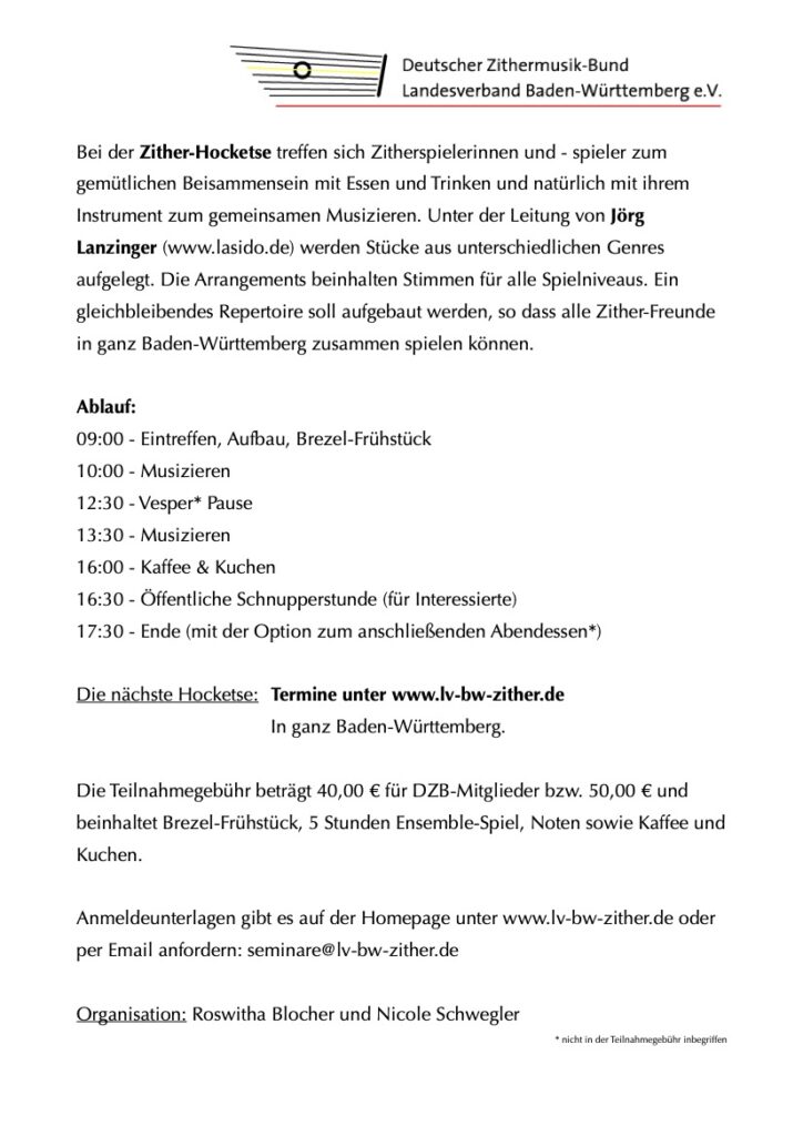 Der Deutsche Zithermusik-Bund, Landesverband Baden-Württemberg e.V. plant eine neue Veranstaltungs-Reihe, die ich pädagogisch leiten darf. Weitere Infos unter www.lv-bw-zither.de.